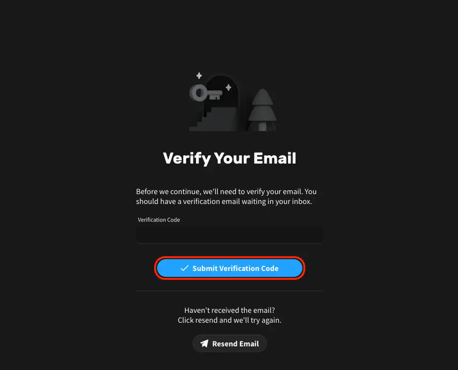 检查您的电子邮件中是否有验证您的电子邮件地址的代码。提供验证码,然后点击Submit Verification Code提交验证码。