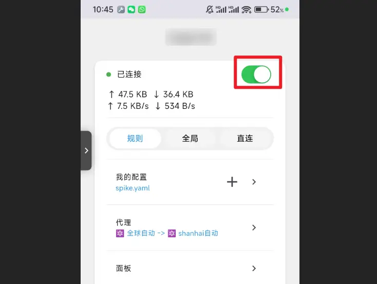 第三步,返回到cxxxh mi 首页点击未连接右边的按钮,即可开启/关闭魔法。
