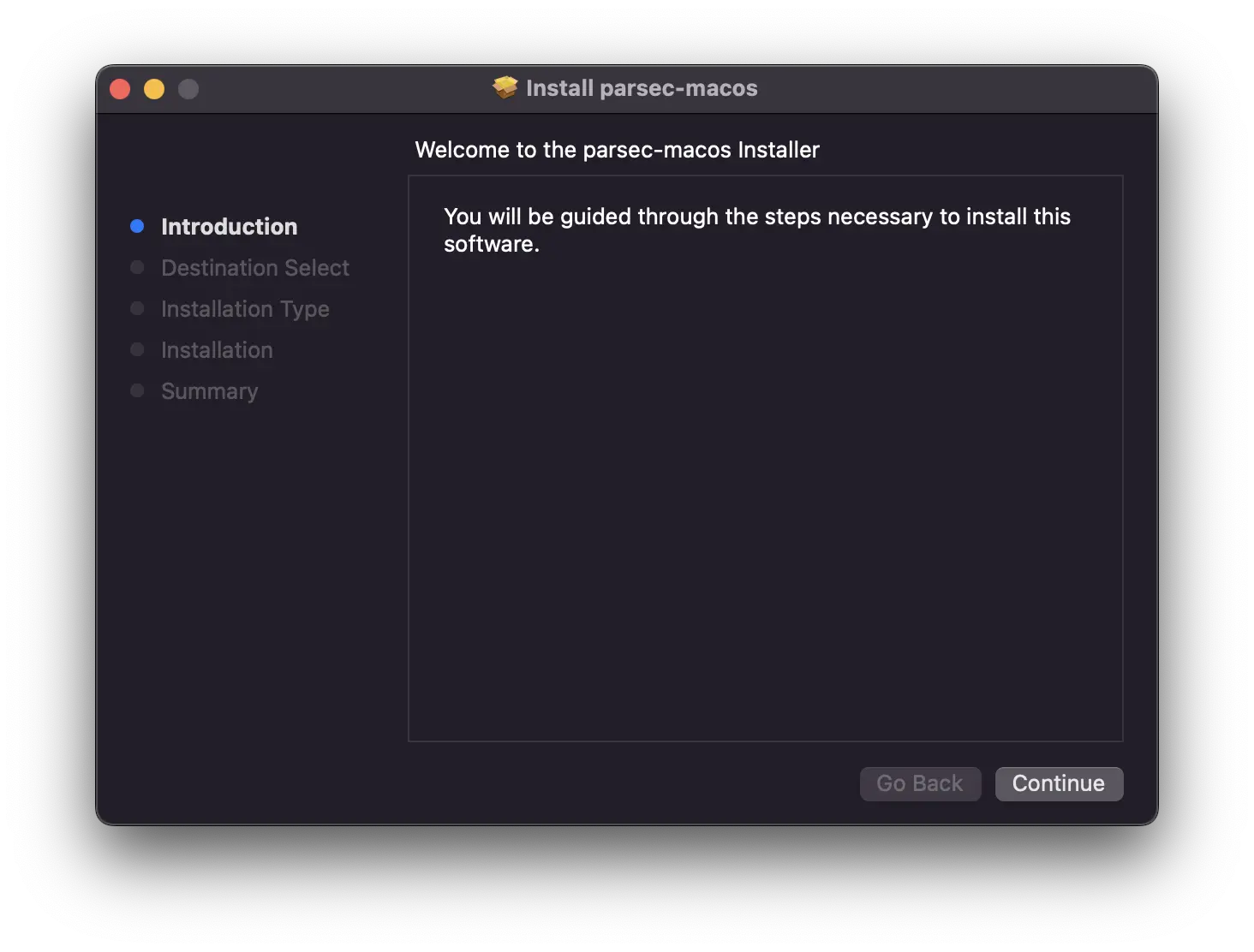 在下载文件夹中找到parsec.pkg,然后双击安装程序以运行它