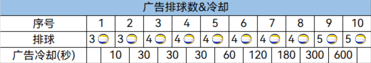 每天看完10条各1分钟左右的广告可获得40个排球。