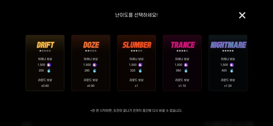 • 基础通关奖励为 200 点,最终金额会根据选择的难度和你的轮次排名而有所不同。