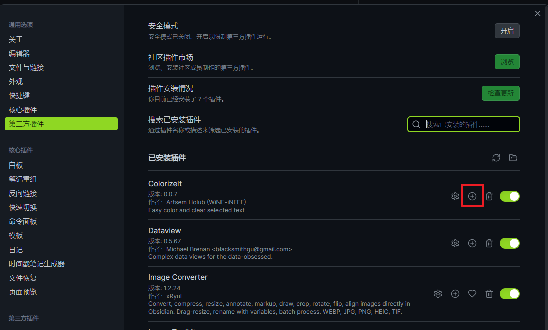 在左下角设置中进入第三方插件,每个已安装插件点击右侧的按钮为该插件配置快捷键