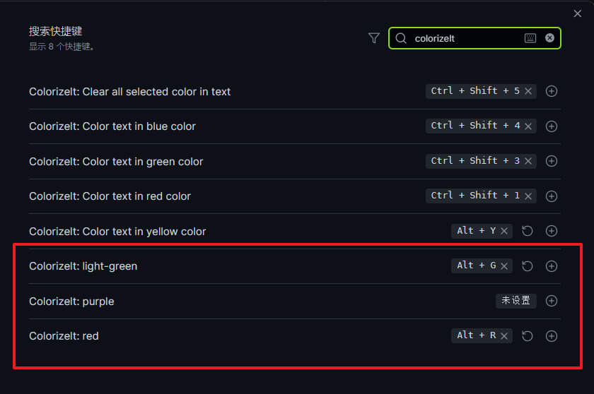 进入快捷键列表后,可以为自己配置的颜色绑定快捷键,建议的快捷键alt + 颜色首字母